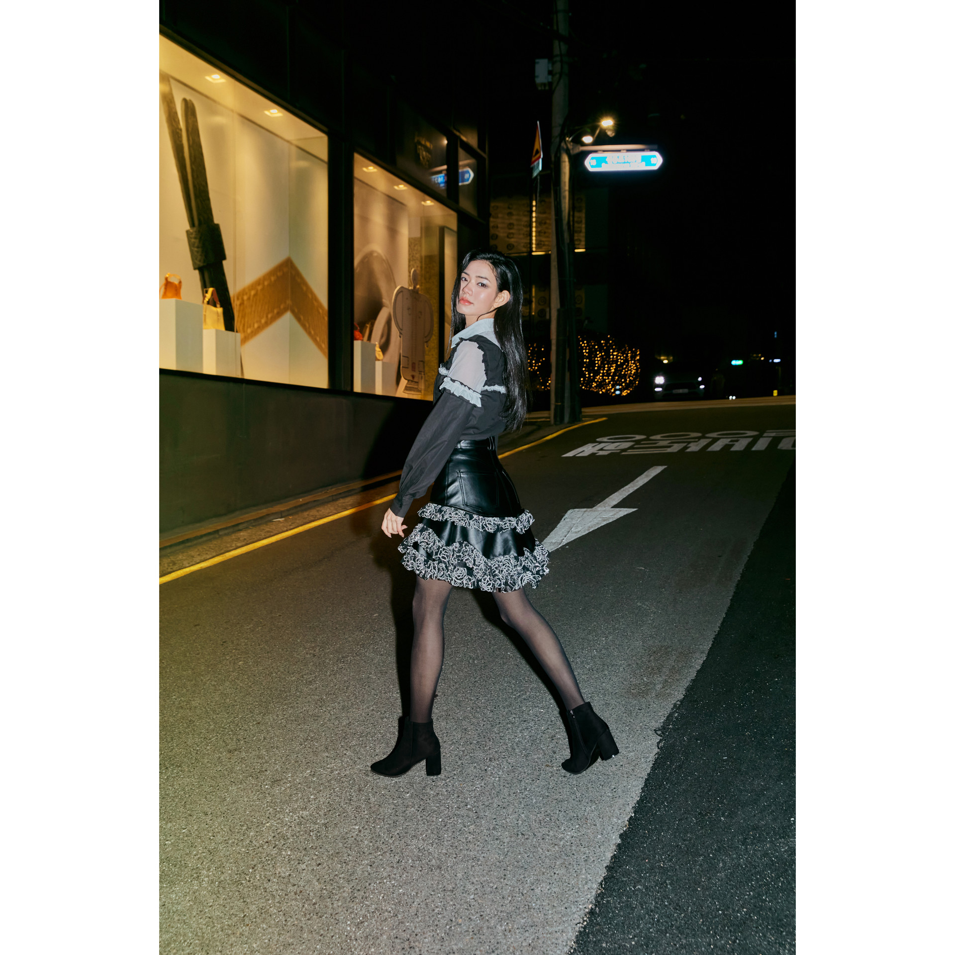 - 어깨라인과 소매에 프릴을 덧대어 러블리한 무드 연출