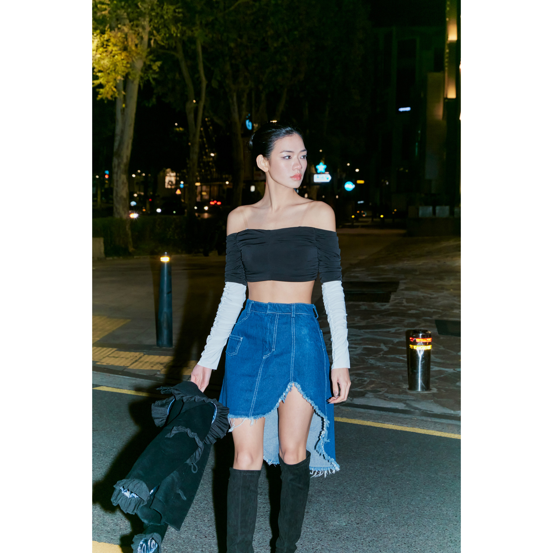 - 오프숄더 셔링 탑