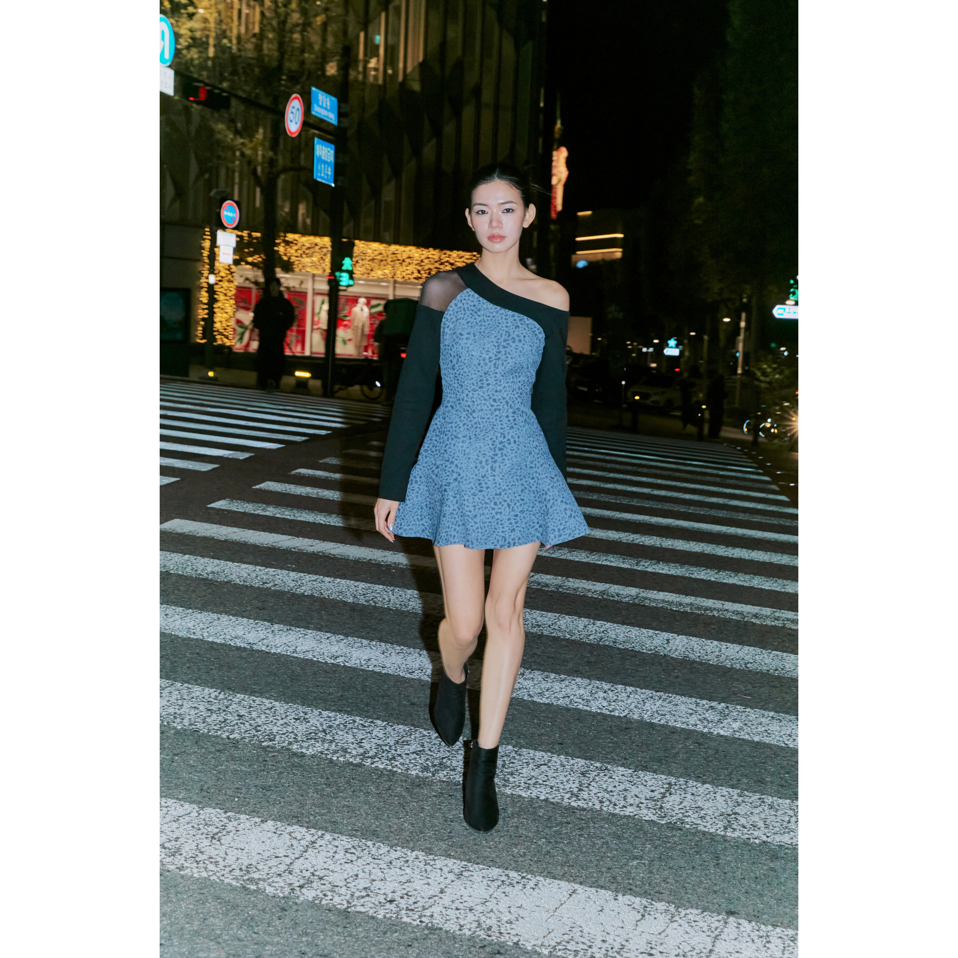 - 오프숄더의 레오파드 미니 드레스
